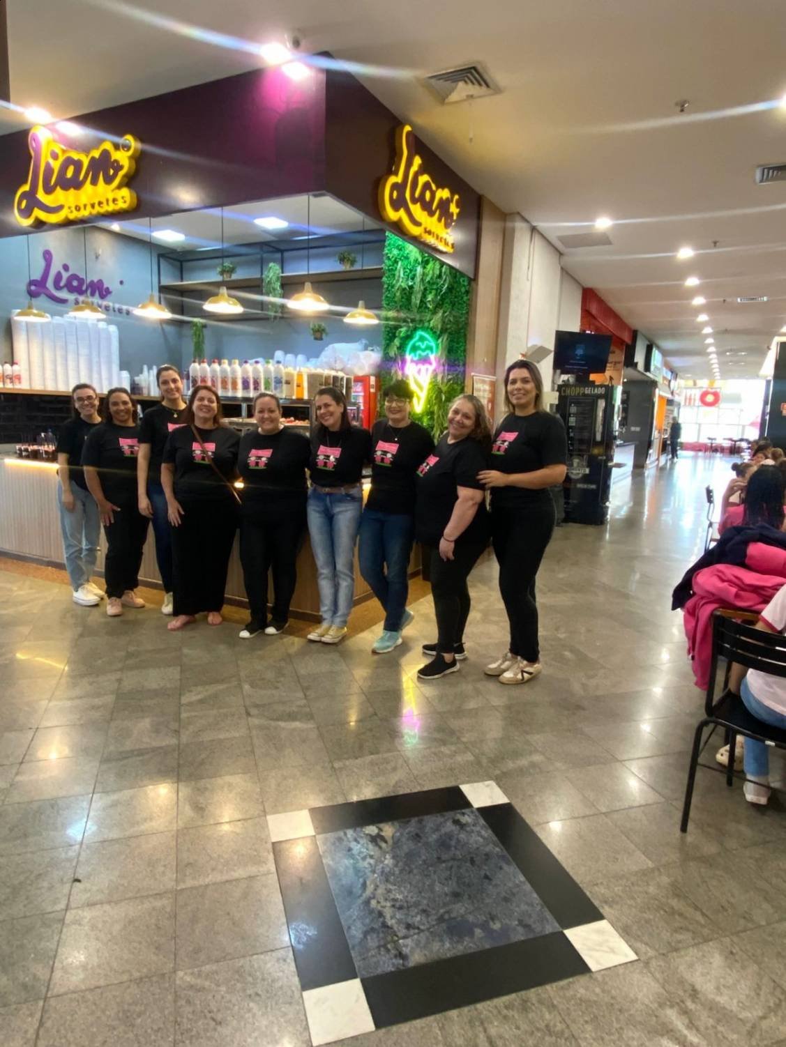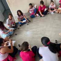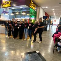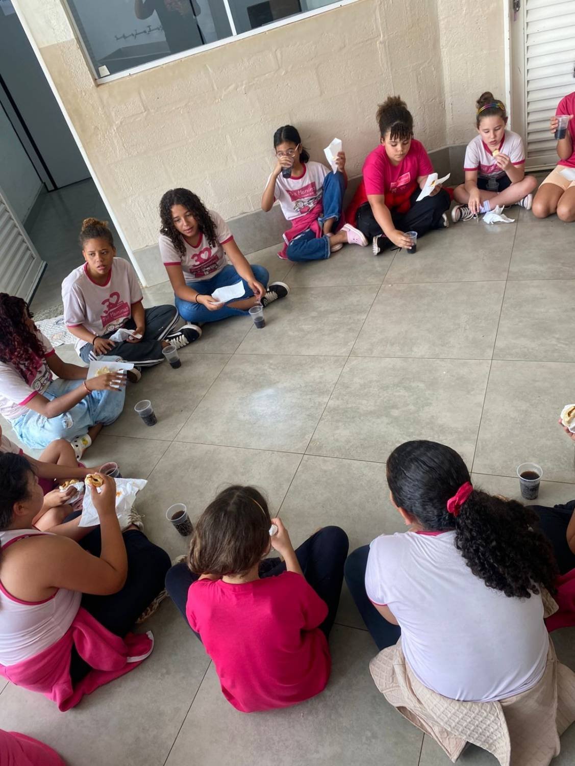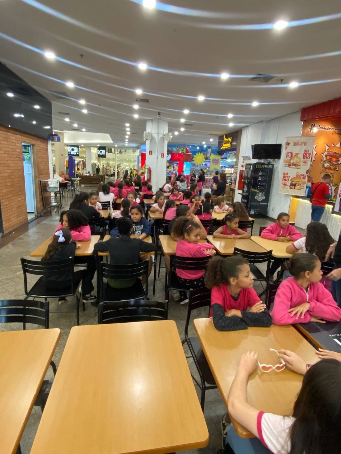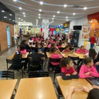 Após a sessão de cinema, o grupo seguiu para o Jaú Shopping, onde as meninas aproveitaram para tomar açaí e sorvete. Essa atividade proporcionou momentos de descontração, alegria e convivência entre todas.