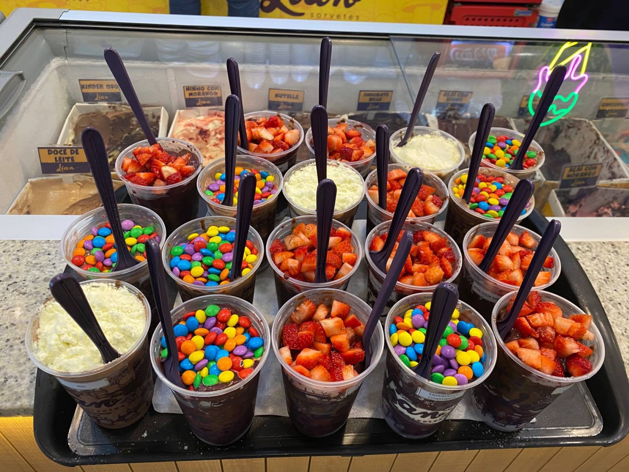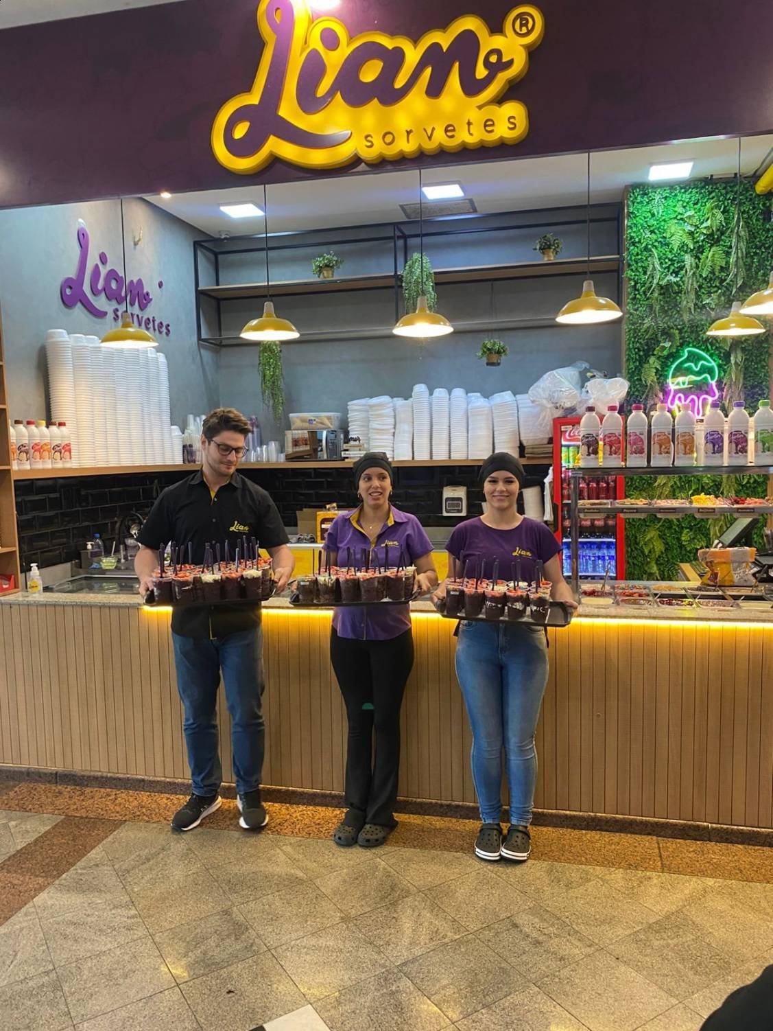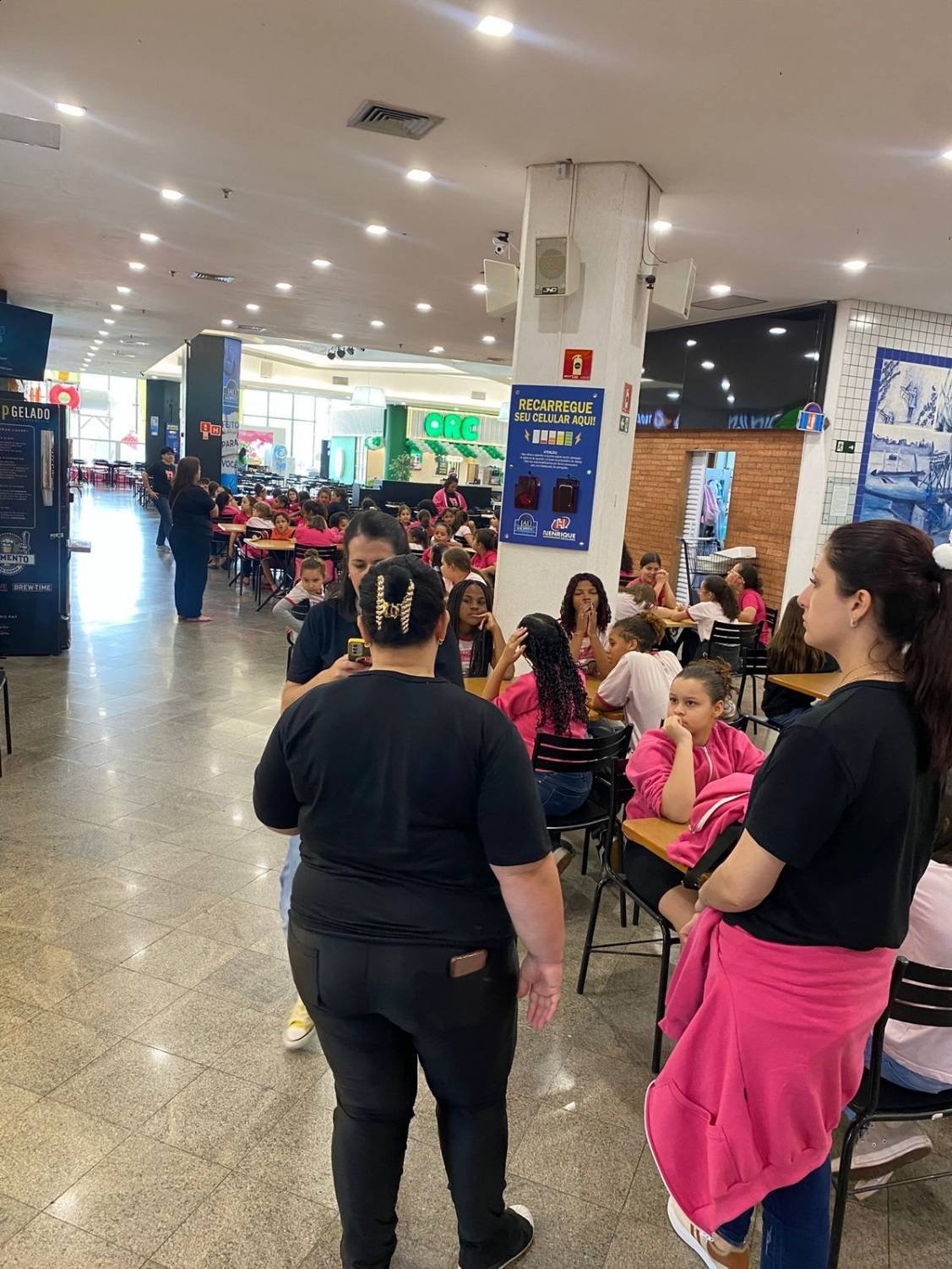 Após a sessão de cinema, o grupo seguiu para o Jaú Shopping, onde as meninas aproveitaram para tomar açaí e sorvete. Essa atividade proporcionou momentos de descontração, alegria e convivência entre todas.