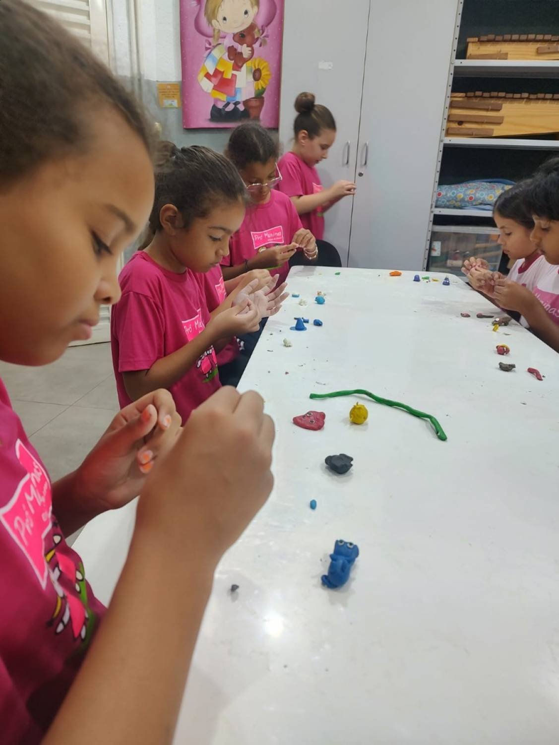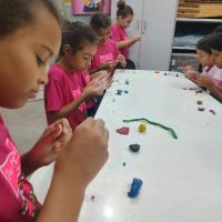 A oficina também incentivou o trabalho em grupo, a troca de ideias e a experimentação artística, promovendo um ambiente colaborativo e de aprendizado. Além de desenvolver habilidades criativas, a atividade estimulou a concentração, a expressão e o protagonismo dos participantes.